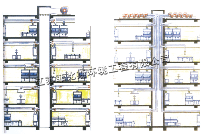 由于實驗室的復(fù)雜性和特殊性,實驗室通風(fēng)系統(tǒng)設(shè)計與舒適性空調(diào)系統(tǒng)的通風(fēng)設(shè)計要求不同,實驗室通風(fēng)設(shè)計的主要目的是提供安全、舒適的工作環(huán)境、減少室內(nèi)的空氣污染。通風(fēng)主要解決的是工作環(huán)境對工作人員的身體和勞動保護問題。要保證實驗人員的安全,除了通風(fēng)柜位置和數(shù)量等問題之外核心問題是要保證通風(fēng)柜的面風(fēng)速恒定在安全范圍內(nèi),一般標準是(0.5-0.1)m/s。這就需要通過在通風(fēng)柜的調(diào)節(jié)閥處的傳感器變風(fēng)量控制系統(tǒng)。以確保通風(fēng)柜排風(fēng)量達到給定的面風(fēng)速。變風(fēng)量系統(tǒng)具有明顯優(yōu)勢:安全性好。當(dāng)操作人員在通風(fēng)柜前有擾動行為時可實現(xiàn)較高的面風(fēng)速(0.5m/s):當(dāng)操作人員不在時能采用較低但保證有害物不外泄的安全的面風(fēng)速(0.3m/s)。在確保安全、舒適的工作環(huán)境的前提下,減少排風(fēng)量。實現(xiàn)了。由于大部分時間均在小流量條件下運行,系統(tǒng)噪音較低;系統(tǒng)反應(yīng)較快,保證了通風(fēng)柜的集塵能力。